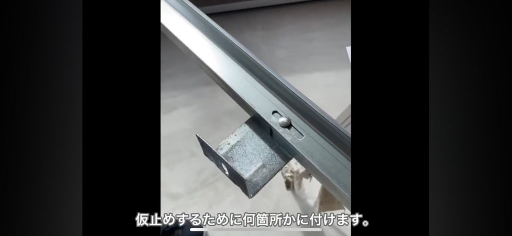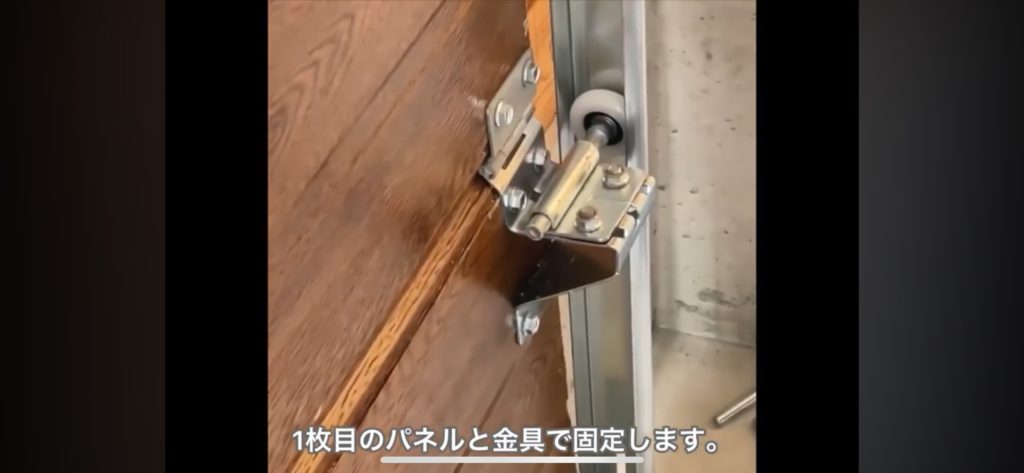 ローラーブラケットは他のパネルでも使用しますが、後でこのパネルにはワイヤーを引っ掛けるので、写真のローラーブラケットを使用します。ローラーは全て同じです。