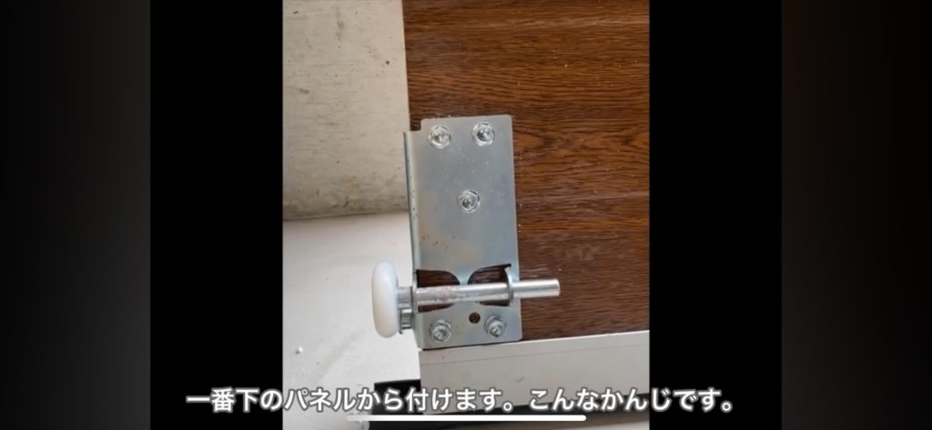 ② 一番下のパネルにローラーブラケットとローラーを取り付けます。<下記写真参照願います>